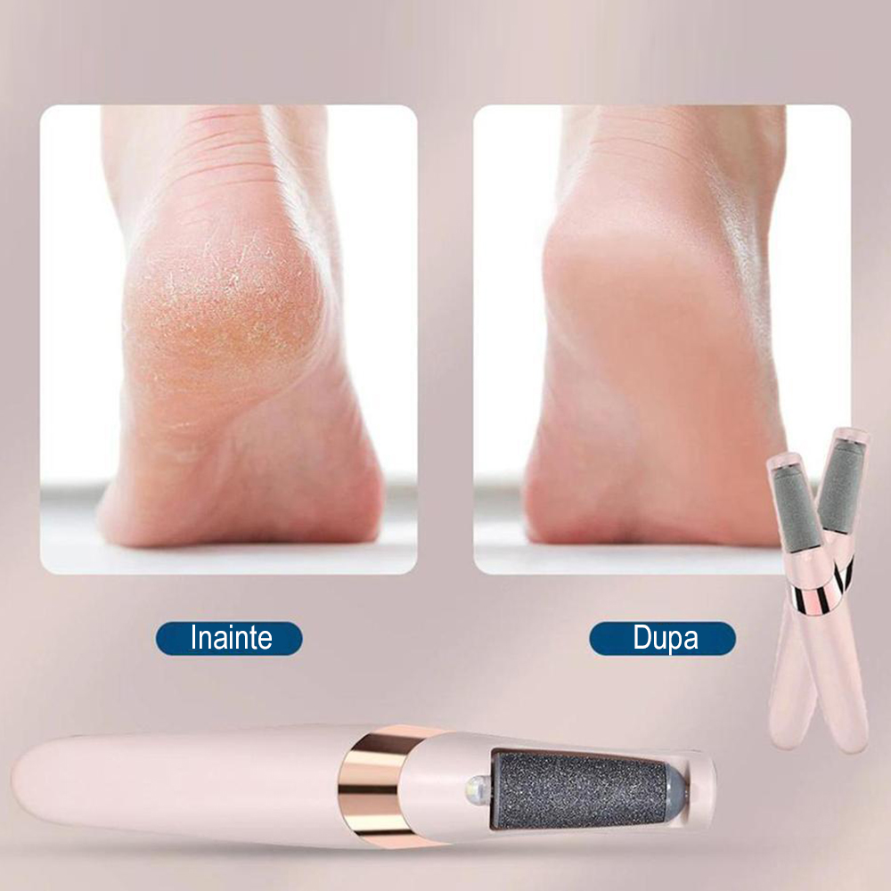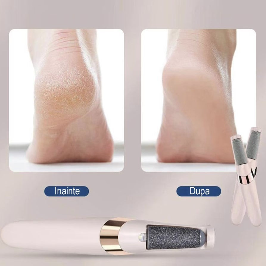 Pila electrică pentru călcâie vă ajută să indepărtați rapid pielea moartă, fără efort. Cu un design ergonomic și cu două role de schimb, pila este un instrument esențial pentru un ritual de ingrijire complet.